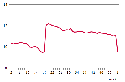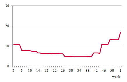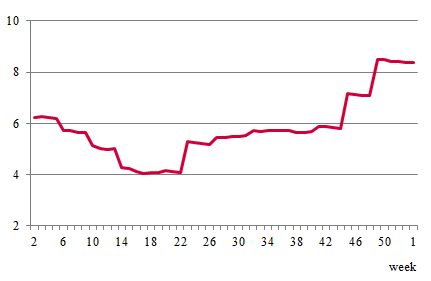 * normal rental rate (VAT excluding) calculated on the base of monthly indicators and weekly shifts in exchange rate